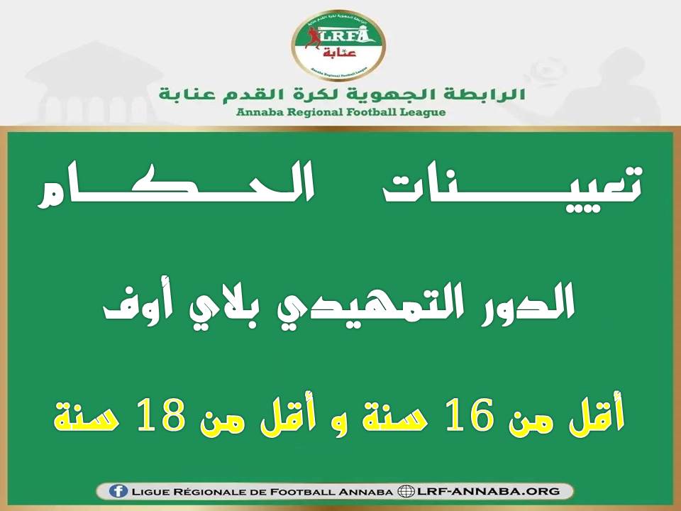تعيينات الحكام الدور التمهيدي بلاي اوف اقل من 16 سنة و اقل من 18 سنة