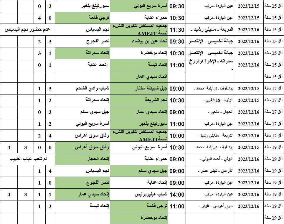 نتائج الدور  التصفوي الثاني للفئات الشبانية