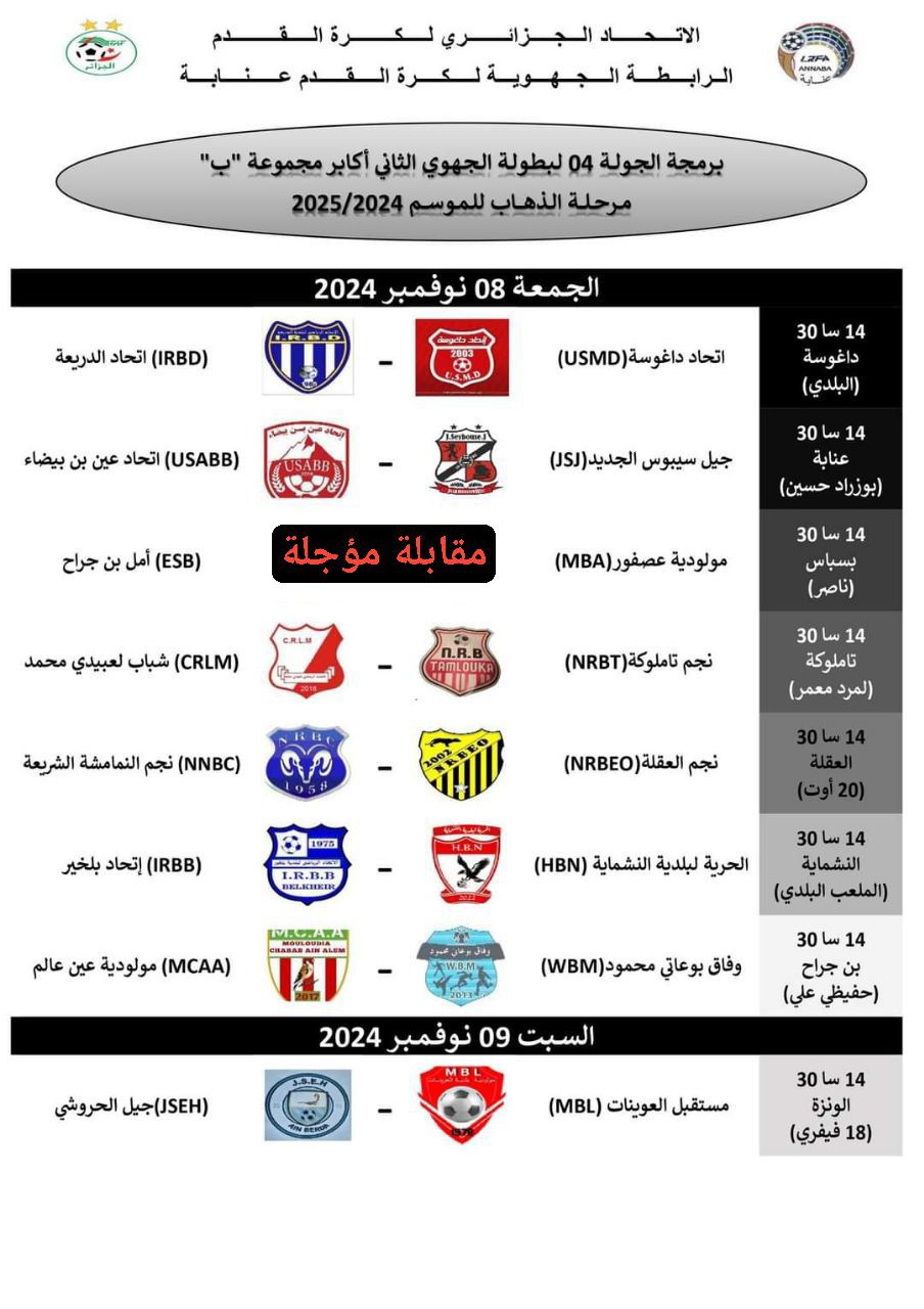 محضر رقم 04 للجنة الجهوية للإنضباط في جلستها ليوم الثلاثاء 05 نوفمبر 2024 (قضايا الجولة الثالثة أكابر)