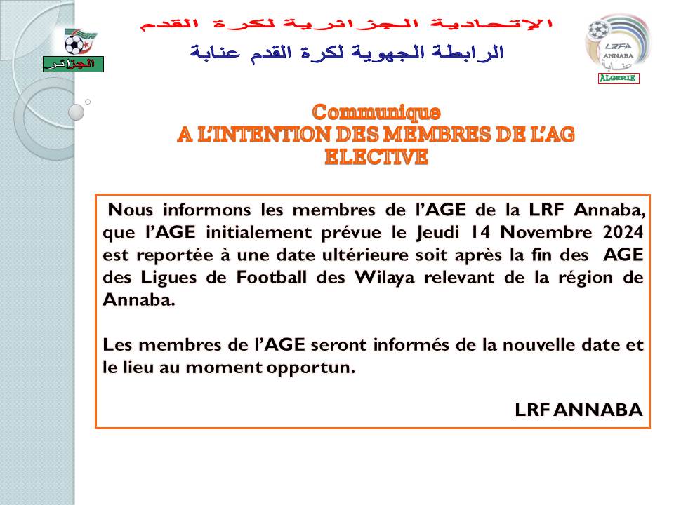 A L’INTENTION DES MEMBRES DE L’AG ELECTIVE