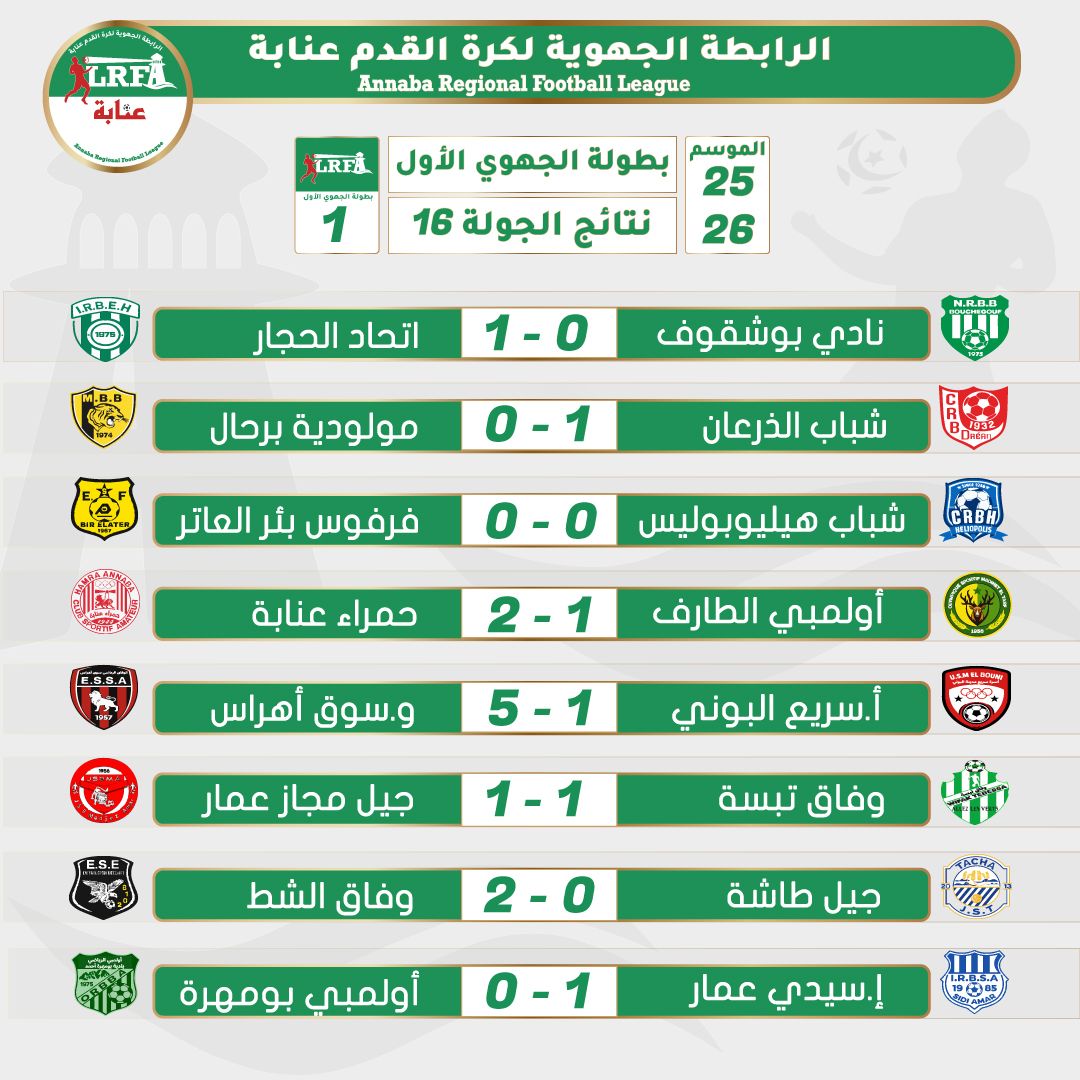 نتائج مباريات الجولة 16 لبطولة الجهوي الأول