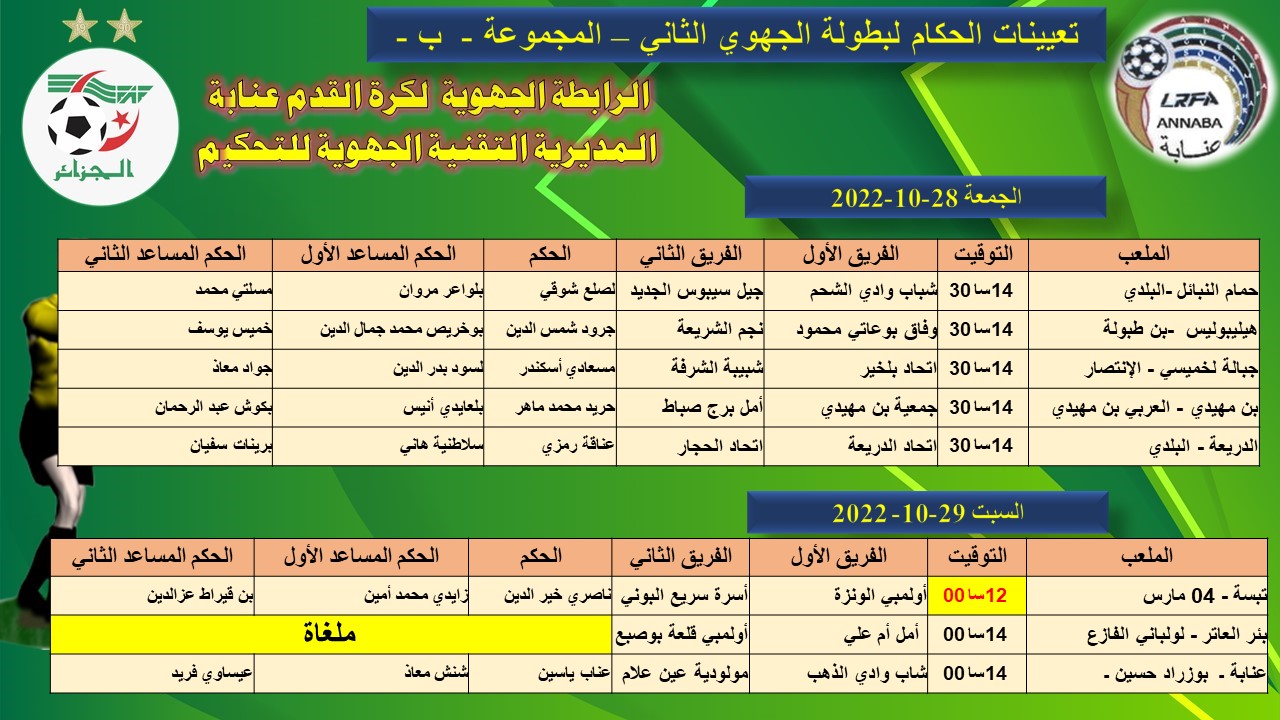 برمحة مباريات الجولة 25 لبطولة الجهوي الثاني في المجموعتين أ و ب