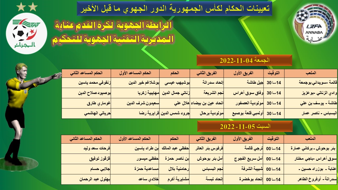 © 2004 - 2026 Ligue Régionale de Football de Annaba - Conception :