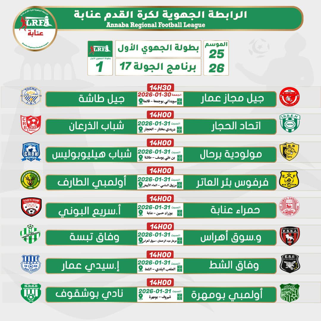 © 2004 - 2026 Ligue Régionale de Football de Annaba - Conception :