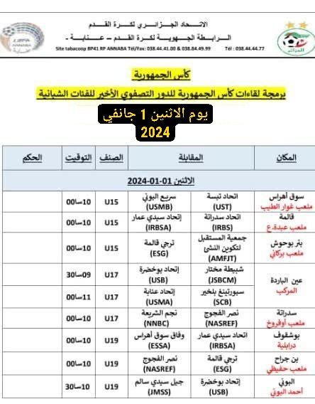 برمجة لقاءات كأس الجمهورية للدور التصفوي الأخير للفئات الشبانية