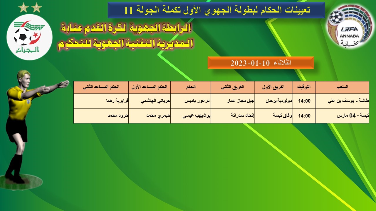 pdf تعيينات الحكام لبطولة الجهو الأول والثاني ليومي 06-07 جانفي 2023 #