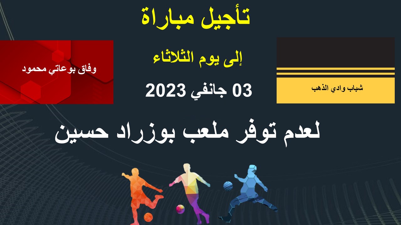 Image تأجيل مباراة شباب واد الذهب -وفاق بوعاتي محمود إلى يوم 03 جانفي 2023 #