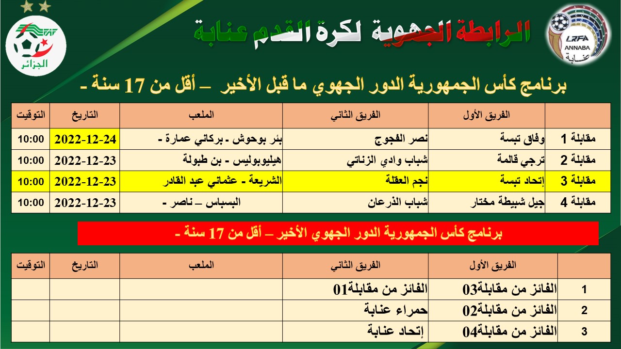 Image تغيير تاريخ مباراة اتحاد عين بن بيضاء اولمبي الونزة اقل من 19 سنة #