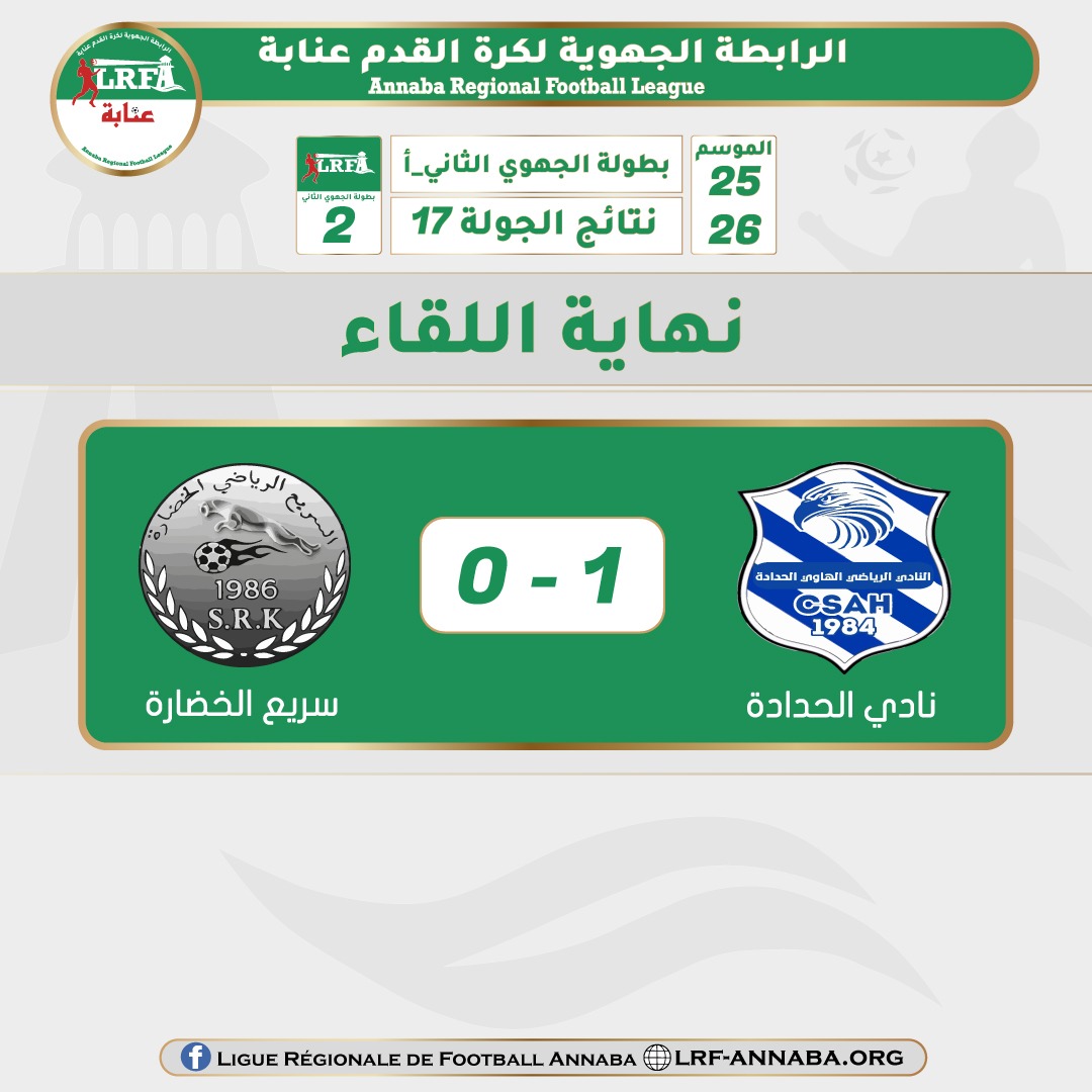 تسوية البرمجة للجولة 17 من الجهوي الثاني _أ بين فريق نادي الحدادة و سريع الخضارة