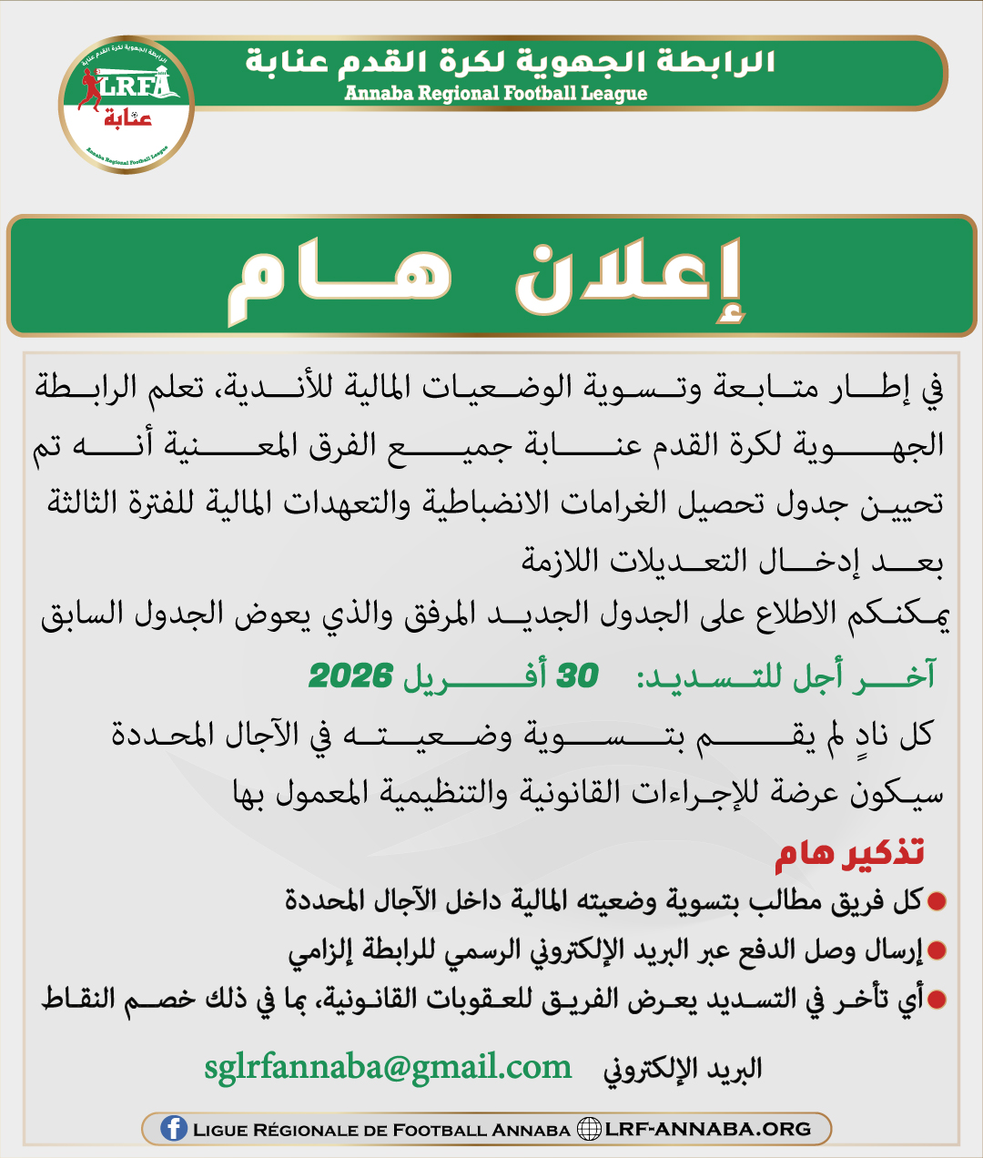 Ligue Régionale de Football Annaba| # | Équipe | Pts | J | +/- |