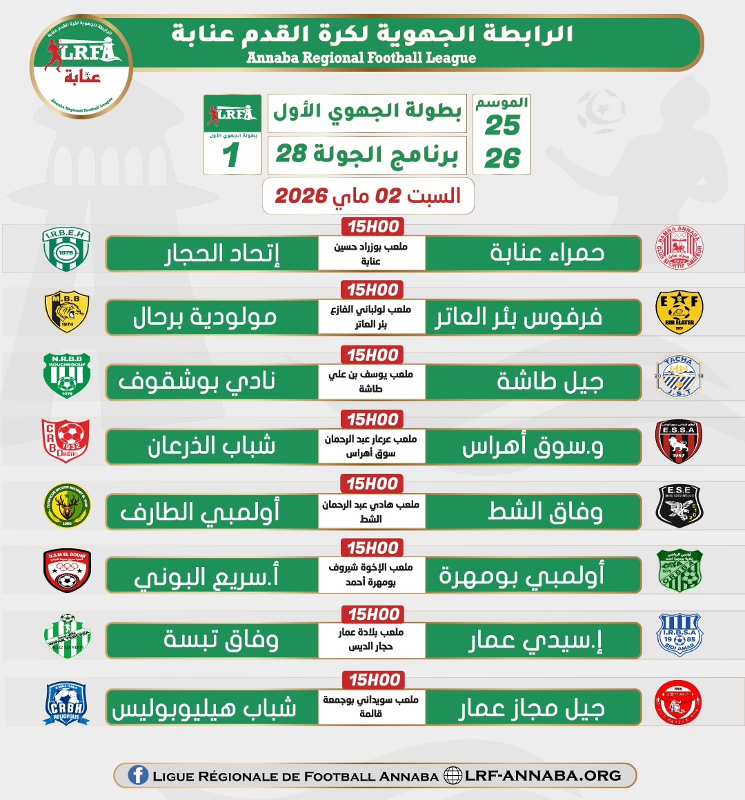 برنامج الجولة 28 لبطولة الجهوي الأول يوم السبت 2 ماي 2026
